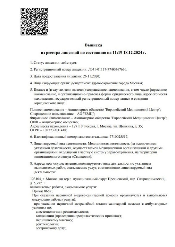 Врачи клиники ЕВРОПЕЙСКИЙ МЕДИЦИНСКИЙ ЦЕНТР