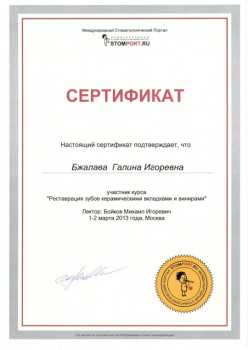 Бжалава Галина Игоревна принимает в «Стоматологическая клиника ВЛАДСТОМ-ВЕШНЯКИ» в Москве. Стаж 25 лет. Специализируется на терапии, по которой клиника оказывает 16 услуг. Квалификация специалиста подтверждена 6 лицензиями, сертификатами и наградами. Для уточнения дополнительной информации о специалисте или записи на прием можно позвонить по телефону