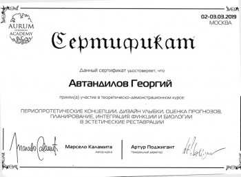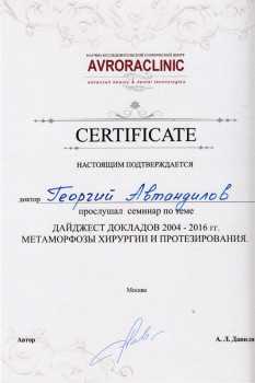 Автандилов Георгий Александрович принимает в «Стоматология ДЕНТА ЭЛЬ» в Москве. К.м.н., стаж 17 лет. Специализируется на ортопедии, по которой клиника оказывает 1 услугу. Квалификация специалиста подтверждена 21 лицензиями, сертификатами и наградами. Для уточнения дополнительной информации о специалисте или записи на прием можно позвонить по телефону