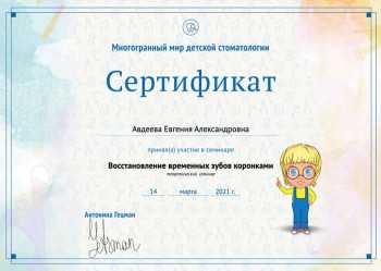Рыхлевич (Авдеева) Евгения Александровна принимает в «Семейная стоматология ДОМОСТОМ» в Москве. Стаж 24 года. Специализируется на детской стоматологии, по которой клиника оказывает 12 услуг. Квалификация специалиста подтверждена 13 лицензиями, сертификатами и наградами. Для уточнения дополнительной информации о специалисте или записи на прием можно позвонить по телефону
