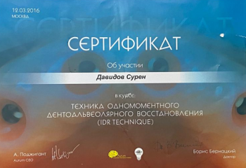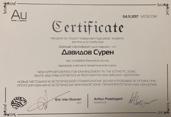 Давидов Сурен Александрович принимает в «Центр персональной стоматологии MAESTRO» в Курске. Стаж 18 лет. Специализируется на хирургии и имплантологии, по которым клиника оказывает 23 услуги. Квалификация специалиста подтверждена 28 лицензиями, сертификатами и наградами. Для уточнения дополнительной информации о специалисте или записи на прием можно позвонить по телефону