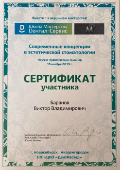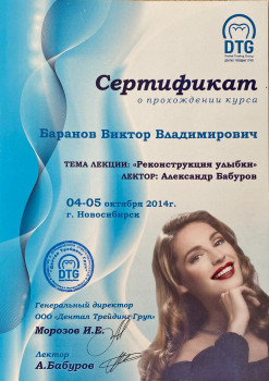 Баранов Виктор Владимирович принимает в «Стоматологическая клиника VIDE DENT» в Новосибирске. Стаж 15 лет. Специализируется на терапии и ортопедии, по которым клиника оказывает 30 услуг. Квалификация специалиста подтверждена 13 лицензиями, сертификатами и наградами. Для уточнения дополнительной информации о специалисте или записи на прием можно позвонить по телефону