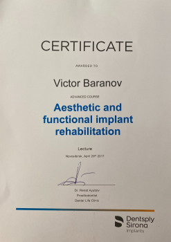 Профессиональные навыки: Протезирование зубов всеми видами коронок, микропротезирование вкладками, эстетическое протезирование винирами, малоинвазивное препарирование зубов, протезирование на имплантатах различных систем, тотальное протезирование на своих зубах и имплантатах, протезирование на имплантатах с использованием мультиюнит абатментов по методике все на 4х, все на 6ти, протезирование частичными и полными съемными протезами, бюгельное протезирование в том числе с замковой системой фиксации, съёмное протезирование с дополнительной фиксацией на имплантатах.