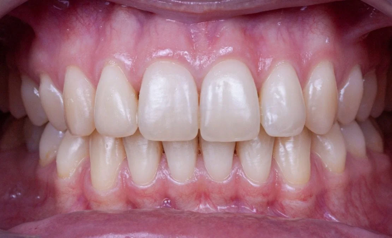 Скученность и нарушения прикуса были "до", которые могут привести к массе проблем с зубами и суставом. И на фото "после" мы видим результат, скученность ушла, прикус практически правильный. Осталось немного и будет идеальный результат.
