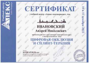 Ивановский Андрей Николаевич принимает в «Стоматологическая клиника AVI SMILE» в Петрозаводске. Главный врач, стаж 25 лет. Специализируется на ортопедии, хирургии и имплантологии, по которым клиника оказывает 9 услуг. Квалификация специалиста подтверждена 7 лицензиями, сертификатами и наградами. Для уточнения дополнительной информации о специалисте или записи на прием можно позвонить по телефону