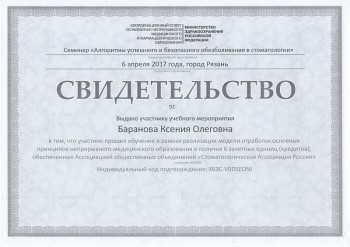Пилипенко (Баранова) Ксения Олеговна принимает в «Стоматологическая клиника MY DENT CLINIC» в Рязани. Стаж 9 лет. Специализируется на терапии и эндодонтическом лечении, по которым клиника оказывает 7 услуг. Имеет 6 работ до/после в портфолио. Квалификация специалиста подтверждена 16 лицензиями, сертификатами и наградами, а опыт 13 отзывами пациентов, из которых 13 положительные. Для уточнения дополнительной информации о специалисте или записи на прием можно позвонить по телефону