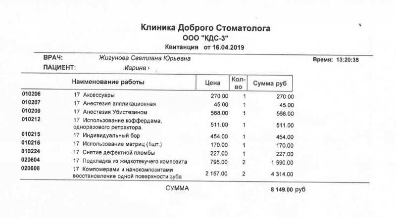 Очень доволен обслуживанием в «Клинике доброго стоматолога». Приветливый персонал, все очень доходчиво объяснили и разжевали. Услуги никакие не навязывали, что очень понравилось. ))) Тщательно меня посмотрели, внимательно выслушали! Проблема была в воспалительном процессе верхушки корня. В гос. поликлинике Московского района мне предложили операцию со страшным названием «резекция». Испугался, решил не жалеть денег и обратился по рекомендации сестры в КДС на Коломяжском. Сложный зуб вылечили в два посещения, никаких операций, вот что значит современное оборудование и хорошие врачи. Обязательно приду на осмотр, как рекомендовал врач. Никаких дополнительных услуг не навязывали! В общем очень доволен и всем советую !! А в гос. поликлинику больше ни ногой!