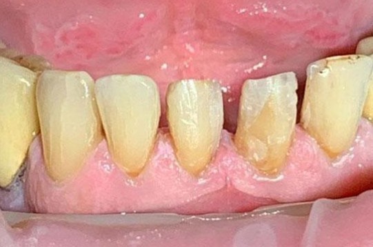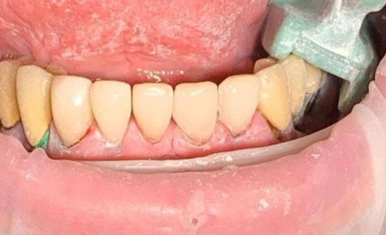 Нижняя челюсть фронтальная группа зубов с 33 по 43 зуб - художественная реставрация (композитные виниры).