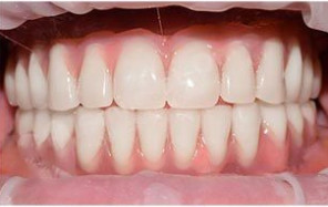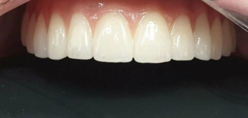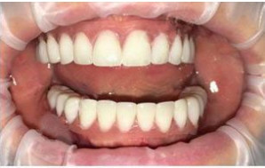 Спустя 5 месяцев стоматолог-ортопед Иващенко Андрей совместно с зубным техником изготовил и установил на имплантаты великолепные керамические реставрации на основе диоксида циркония.