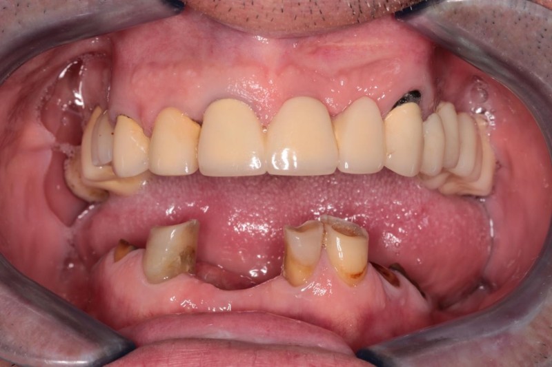 Проблема пациента: частичное отсутствие зубов на нижней челюсти и эстетический дефект.