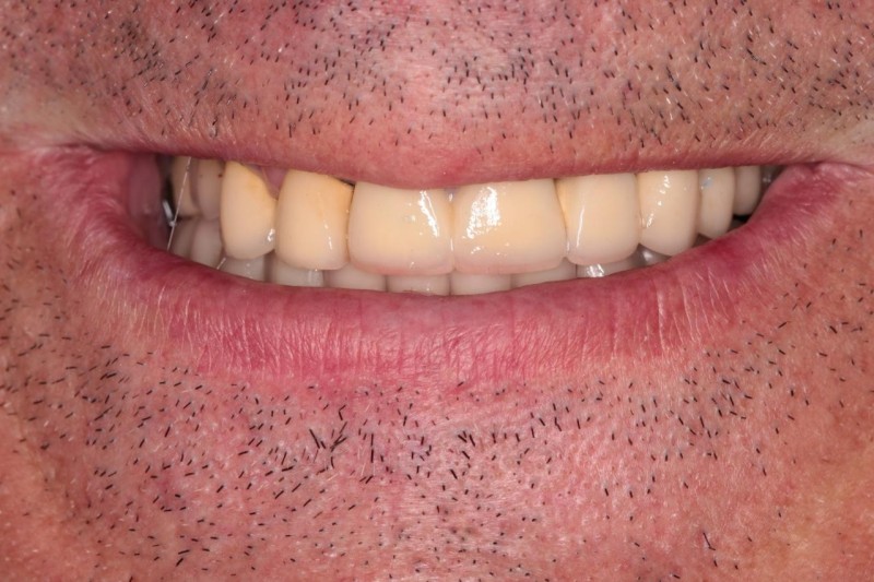 Зубы на верхней и нижней челюсти были восстановлены по методу All-on-6. Пациент улыбался уже на третий день после операции.
